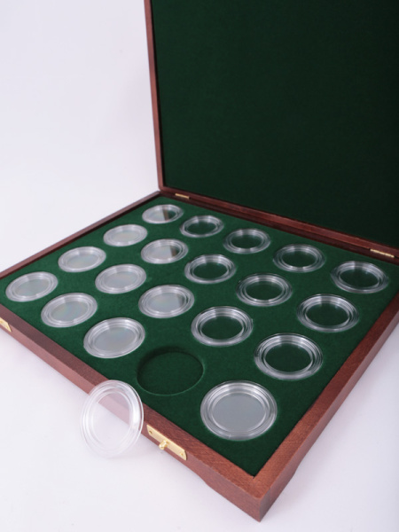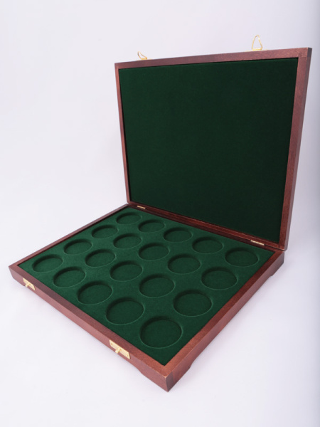 Футляр деревянный Volterra Duo (322х262х50 мм) для 84 монет 2 евро (в капсулах Leuchtturm). 2 уровня