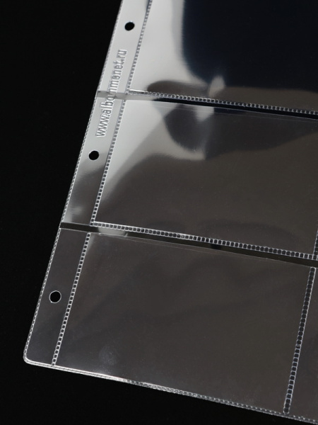 Лист формата ОПТИМА (Россия) (201х252 мм) из прозрачного пластика на 8 ячеек (92х54 мм). СомС, ЛБ8-O