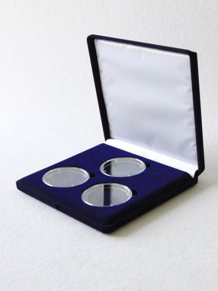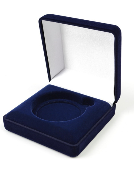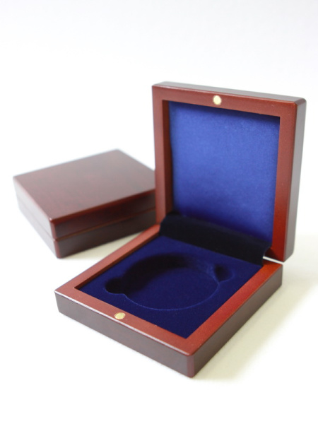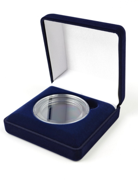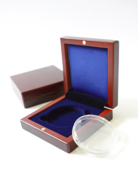 Деревянный футляр Volterra (100х100х32 мм) для одной монеты, медали в капсуле (диаметр 58 мм). Синий