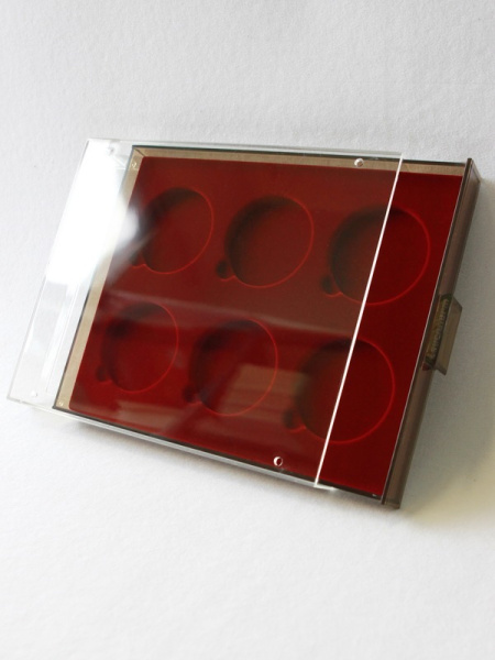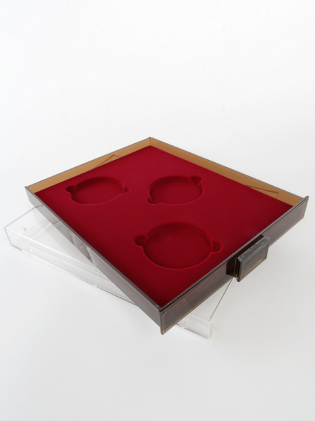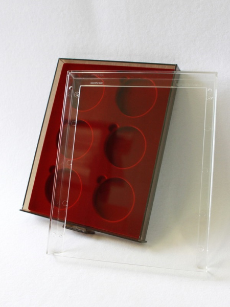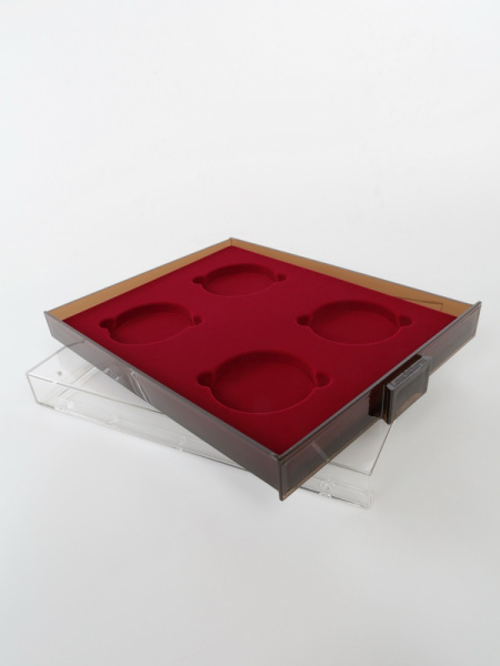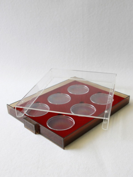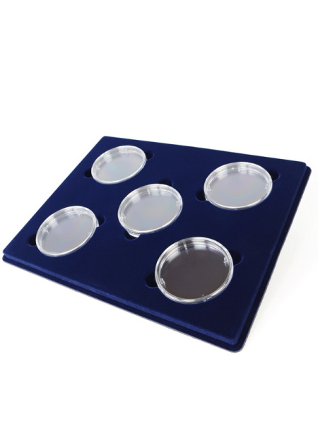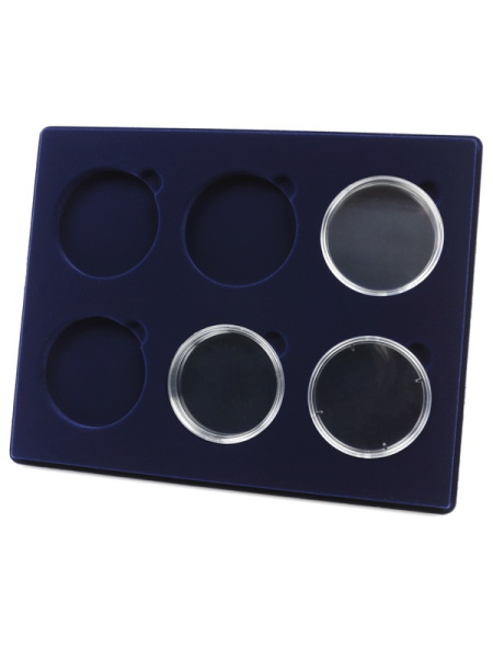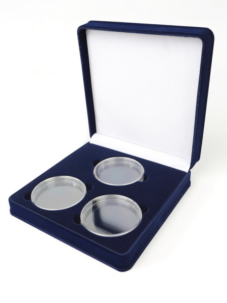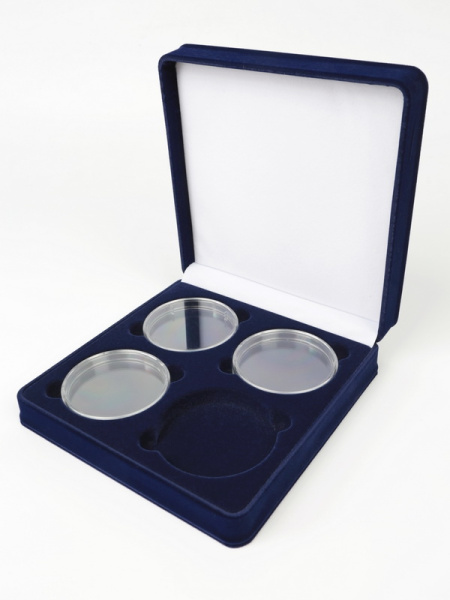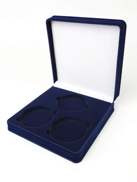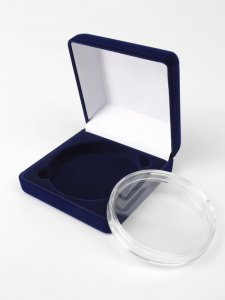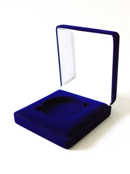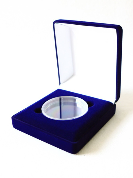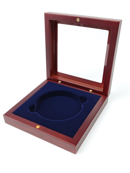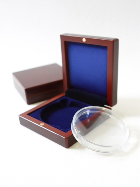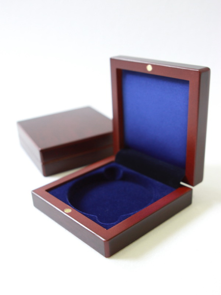 Деревянный футляр Volterra (100х100х32 мм) для одной монеты, медали в капсуле (диаметр 74 мм). Синий