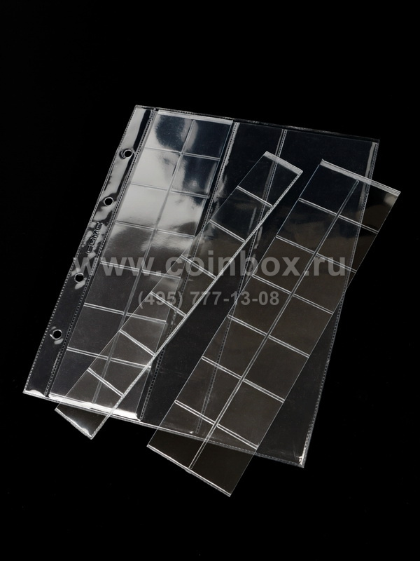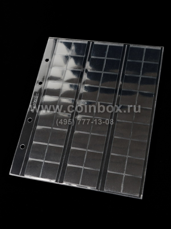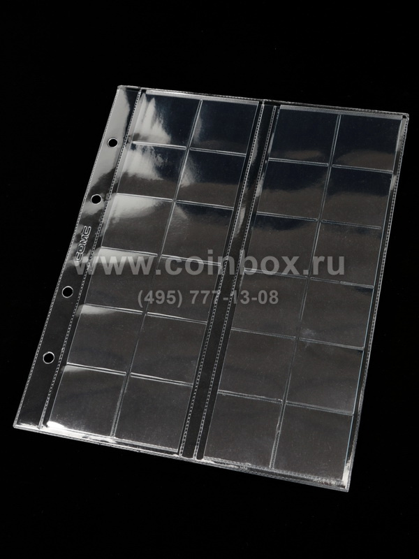 - Лист-обложка формата ОПТИМА (Россия) (201х252 мм) с выдвижными секциями на 24 ячейки. Для монет диаметром до 33 мм. СомС, ЛМ24-O - 3 шт;