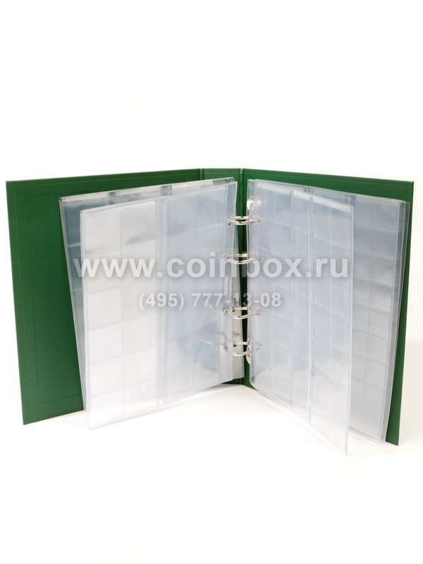 Всего альбом вмещает до 15 прозрачных листов-обложек OPTIMA для монет. Количество помещаемых листов зависит от толщины коллекционных предметов, а также от наличия прокладочных листов.
