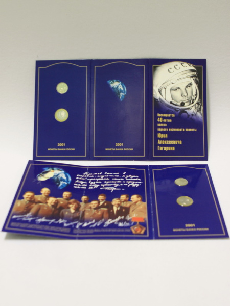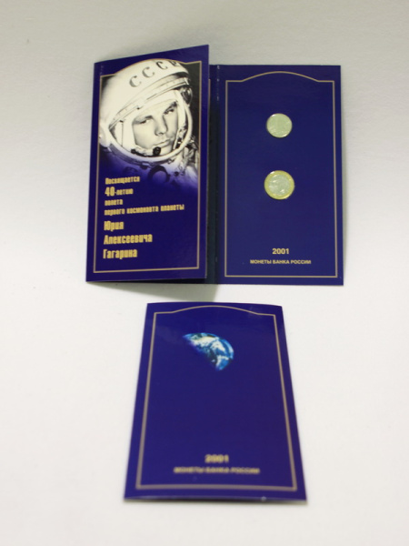 - 40-летие полета первого космонавта планеты Ю.А.Гагарина: 2 монеты в наборе номиналом 10 и 2 рубля;