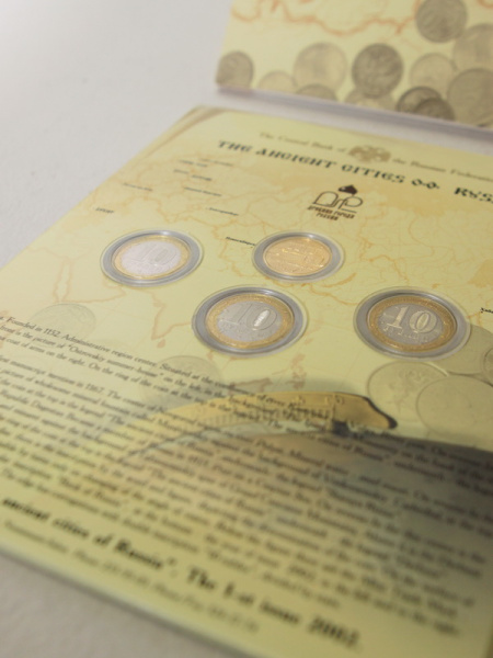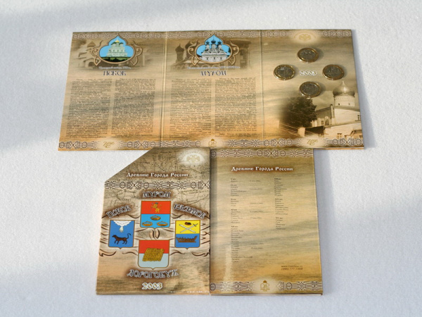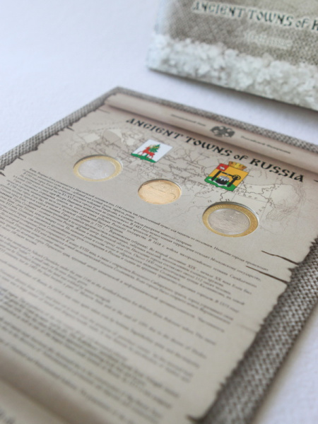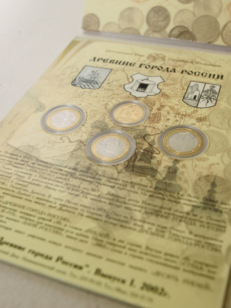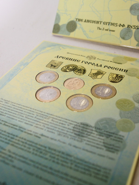 - Древние Города России: памятные монеты достоинством 10 рублей;