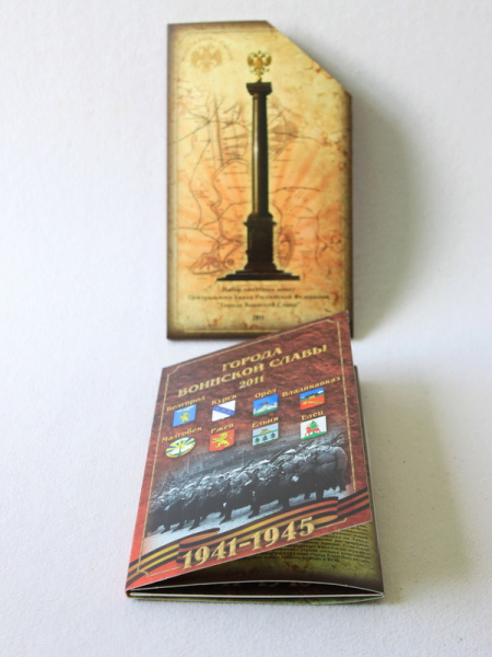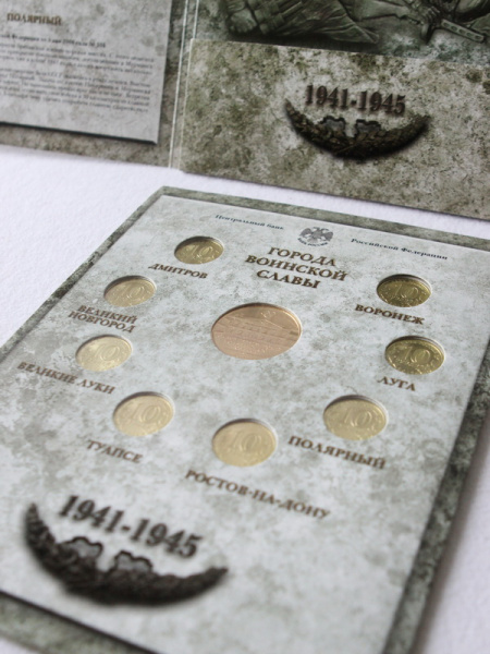 - Города Воинской Славы: монеты номиналом 10 рублей — города Белгород, Курск, Орел, Владикавказ, Малгобек, Ржев, Ельня, Елец;