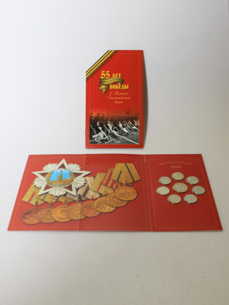- 55 лет в Великой Отечественной войне: монеты достоинством 2 рубля, города Москва, Ленинград, Мурманск, Сталинград, Смоленск, Новосибирск, Тула;