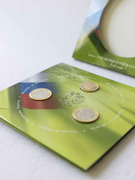- Российская Федерация — памятные монеты в буклете достоинством 10 рублей;