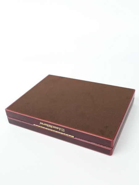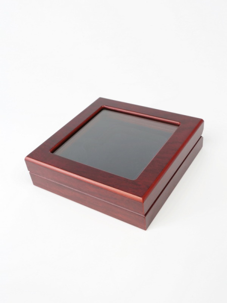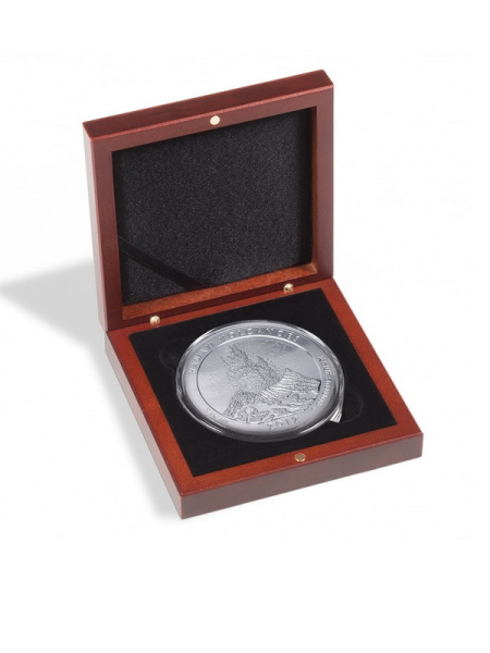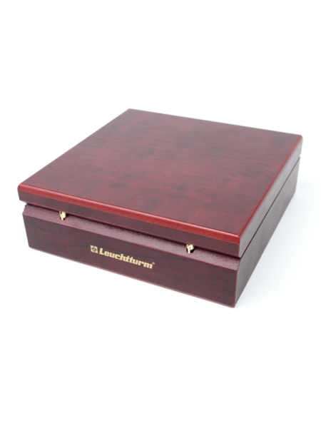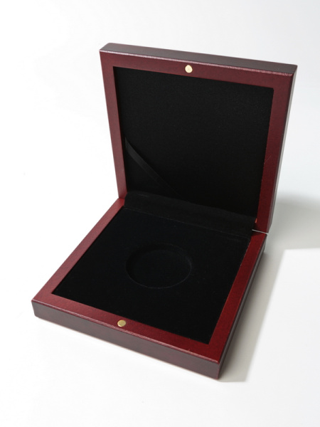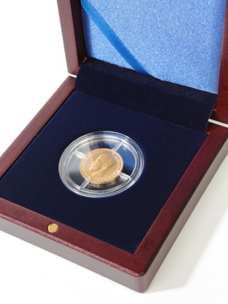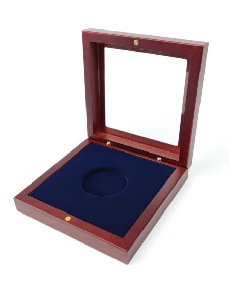 Деревянный футляр Volterra (100х100х32 мм) для одной монеты, медали в капсуле (диаметр 74 мм). Синий