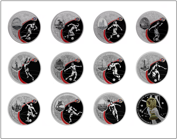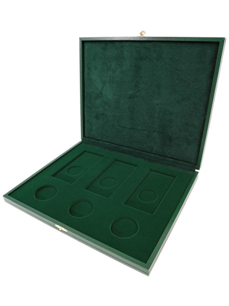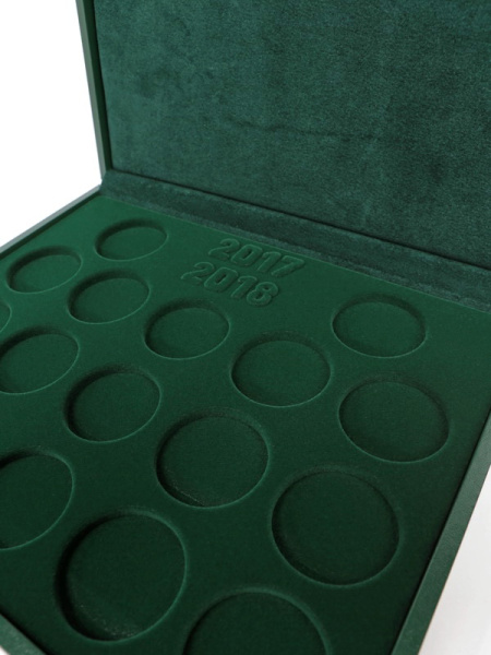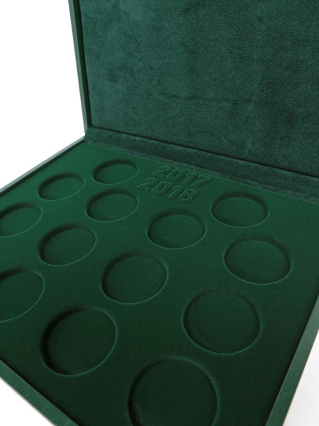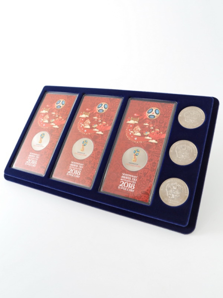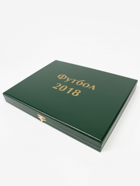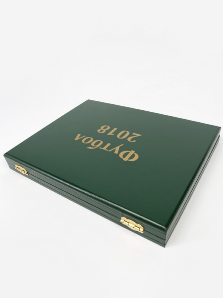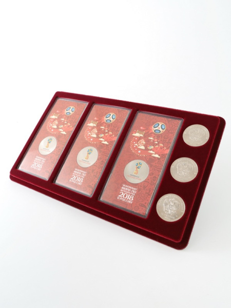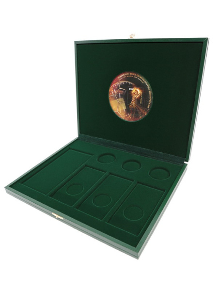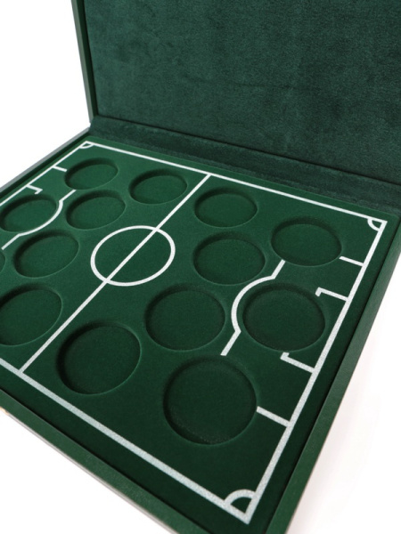 Футляр кожзам Izumrud S (298х237х33 мм) для 3 золотых и 14 серебряных монет «Футбол 2018» в капсулах