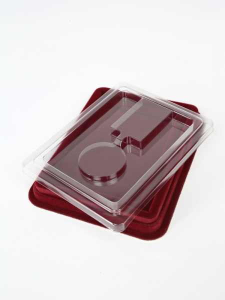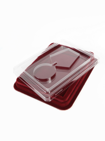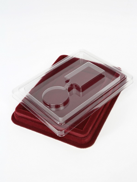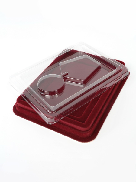 Привлекательно оформленная упаковка для медалей представляет собой флокированные футляры с разным количеством углублений.