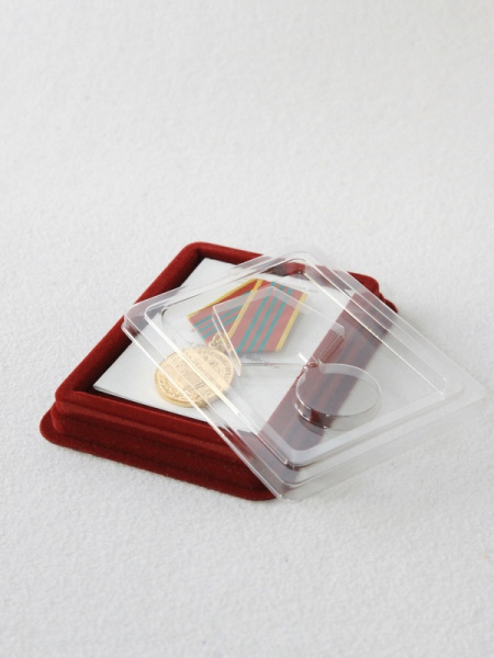 Флокированная упаковка позволяет сохранить награду в неизменном виде, а значит, пронести сквозь годы и память о своих заслугах и заслугах ваших близких.