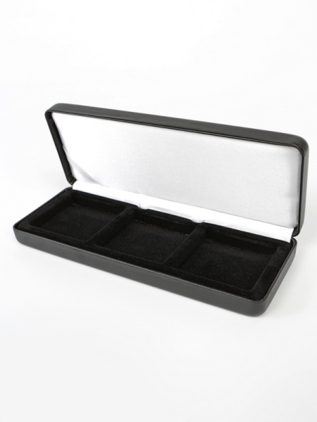 Футляр из искусственной кожи, оснащенный выпуклым флокированным ложементом, обеспечивает хорошую возможность презентации монет. Благодаря высокой прочности таких футляров, хорошо продуманной внутренней конструкции и большого выбора моделей с различным количеством ячеек, можно с легкостью обеспечить сохранность любых серий памятных монет. Рассчитаны такие футляры на длительную эксплуатацию.