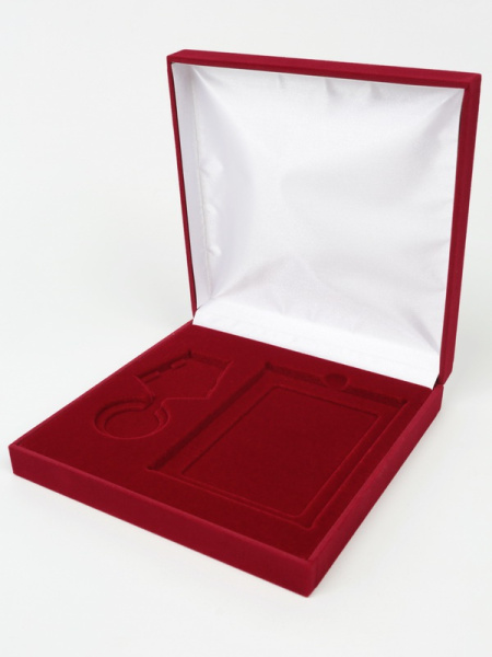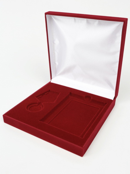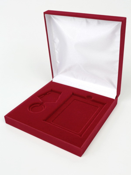 Футляр (161х161х40 мм) с поролоновой вставкой под универсальную медаль и удостоверение (75х105х6 мм)