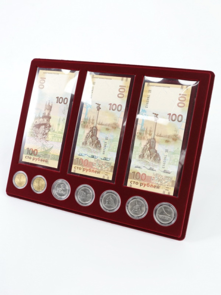 16 марта 2014 года в результате проведения референдума большинством голосов избирателей Крым и Севастополь были воссоединены с Россией. В честь этого знаменательного события были выпущены коллекционные монеты и банкноты. В каталоге нашего интернет-магазина вы можете найти, как коллекционные деньги, так и различные виды упаковок для монет. Для того чтобы монеты и банкноты, выпущенные ко дню присоединения Крыма и Севастополя к РФ, были надежно защищены, а также их можно было удобно рассматривать, предлагаем купить буклеты, футляры и планшеты.