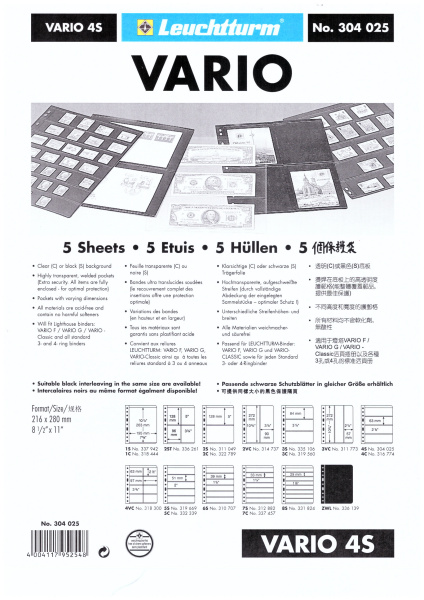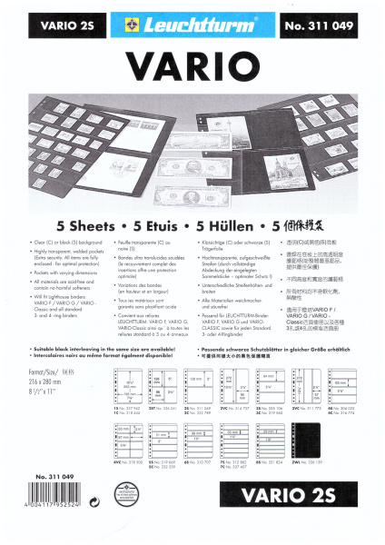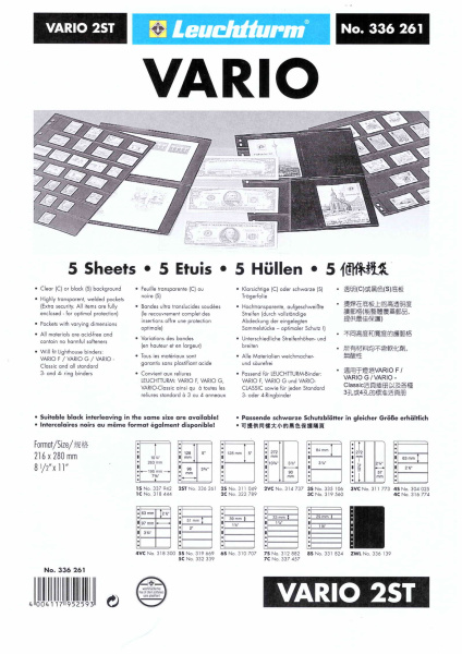 Листы-обложки VARIO 5S (216х280 мм) на 5 ячеек (195х51 мм). Упаковка из 5 листов. Leuchtturm, 319669