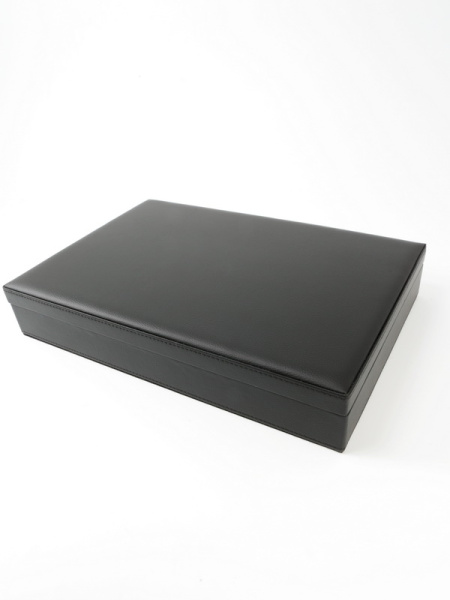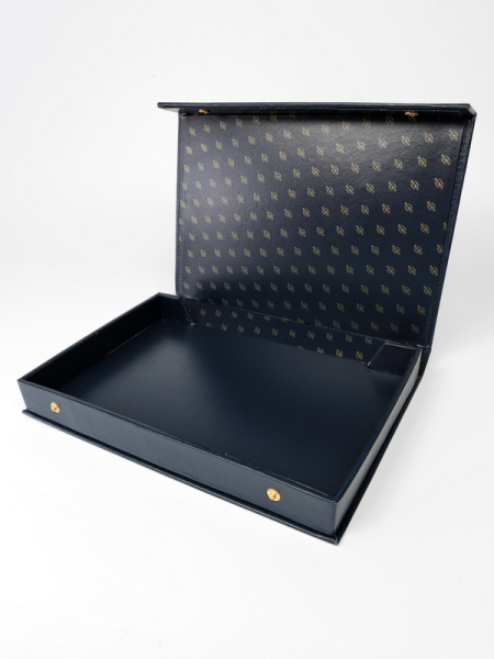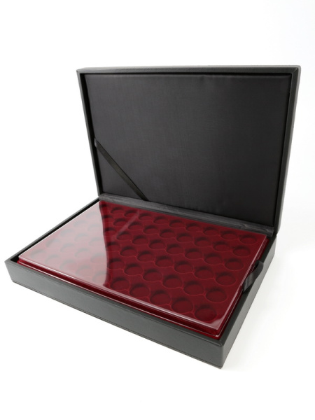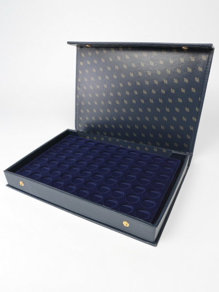 Папка для хранения планшетов представляет собой прямоугольный контейнер, покрытый искусственной, высококачественной кожей, внутри которого надежно фиксируются планшеты с монетами или медалями. Сверху папка закрывается крышкой на кнопки, которые не дают планшетам выпасть.