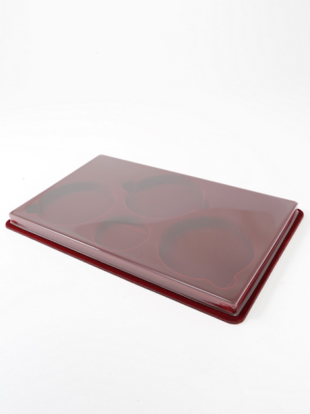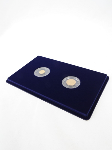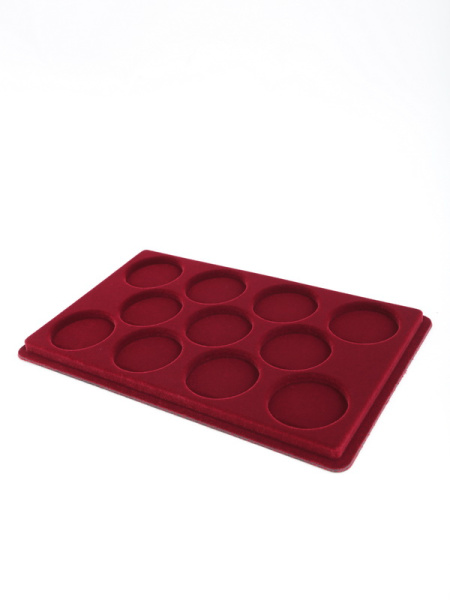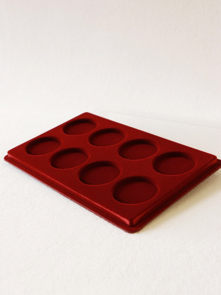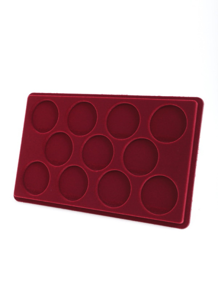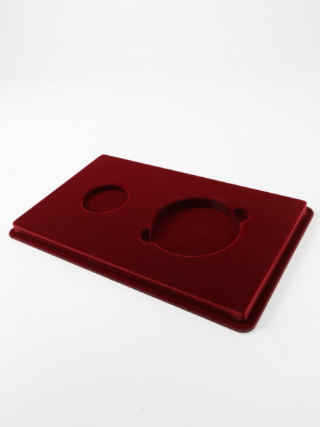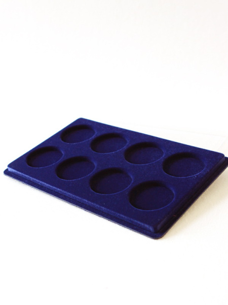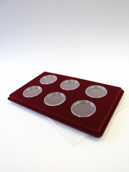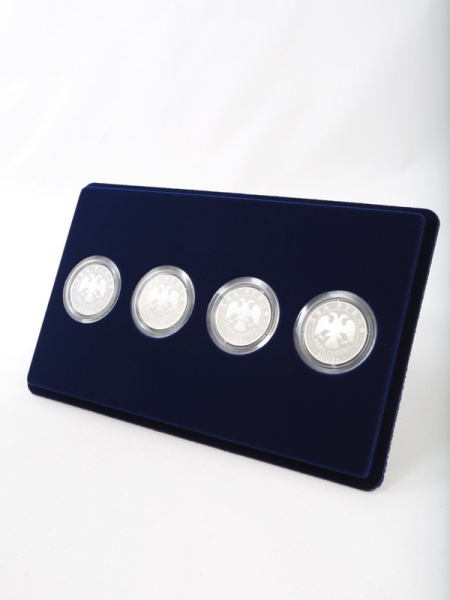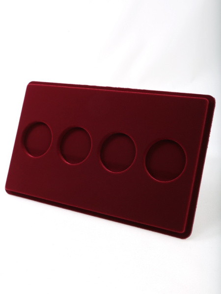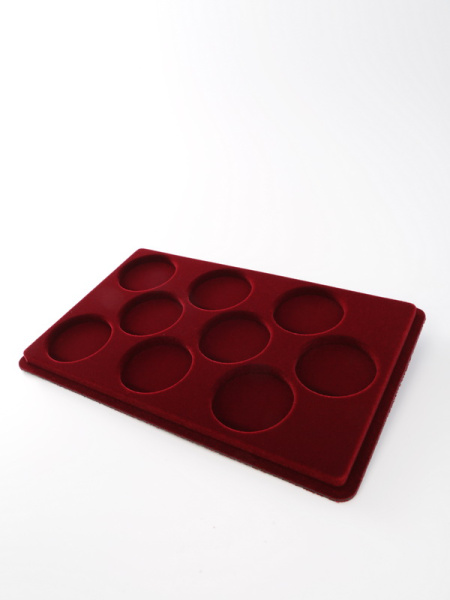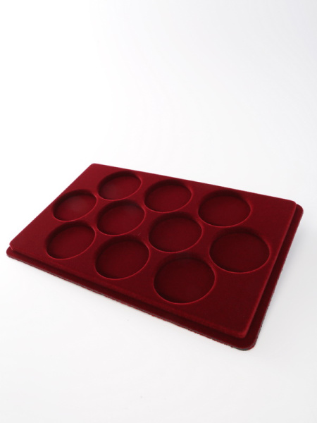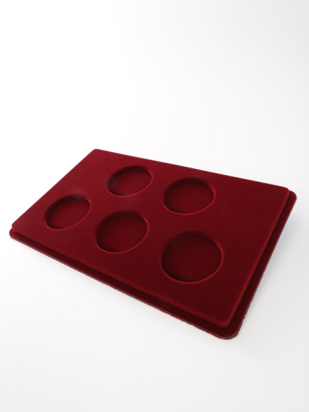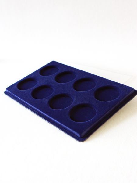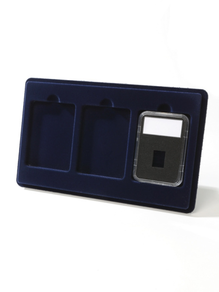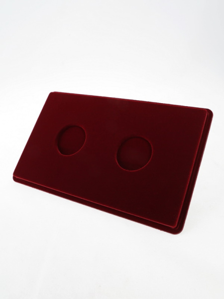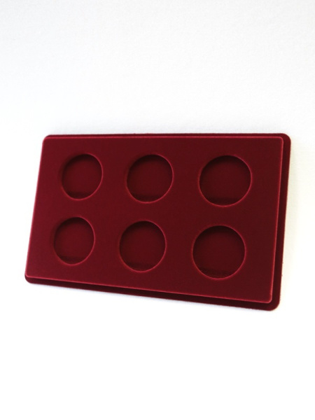 Основанием планшета служит пластиковый корпус, покрытый бархатом. Цветовая палитра материала может быть самой разнообразной. Мы предлагаем флок черного, зеленого, темно-синего, темно-бордового оттенка. Коллекционные монеты в капсулах на цветной подложке смотрятся более презентабельно, что привлекает дополнительное внимание и значительно повышает их ценность.