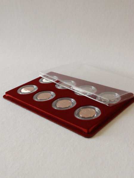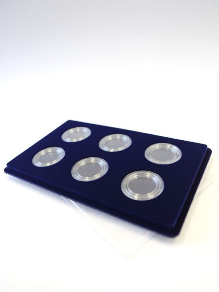 Монета в капсуле, размещенная на планшете под прозрачной пластиковой крышкой, имеет отличный обзор. При этом нумизматические экземпляры приобретают эффективную защиту от попадания влаги, пыли, механических повреждений.
