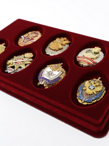 Большой популярностью пользуются персонализированные планшеты для хранения знаков и значков определенной тематики: об окончании военных и технических училищ, отличники Советской Армии, гербы городов, значки первенств ВМФ, ВВС, Ленинграда, Москвы.