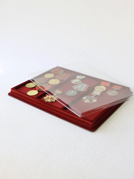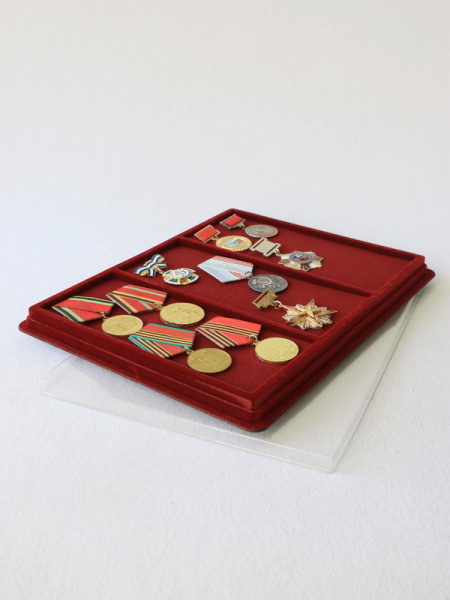 Купленный в нашей компании планшет, имеет невысокую стоимость, но при этом качество наших изделий соответствует международному уровню. Удобное размещение медалей, знаков, значков помогает красиво и аккуратно оформить награды. Прочные и долговечные ячейки предназначены для продолжительного хранения семейных реликвий.