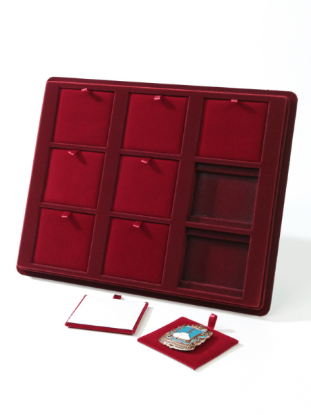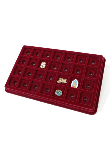 По желанию можно разместить вашу коллекцию в универсальных моделях, оснащенных поролоновыми вставками. Что позволяет прикалывать значки в произвольном порядке. Существуют модели планшетов с ячейками прямоугольной, квадратной, ромбовидной формы, в которые очень удобно вкладывать экземпляры коллекции.