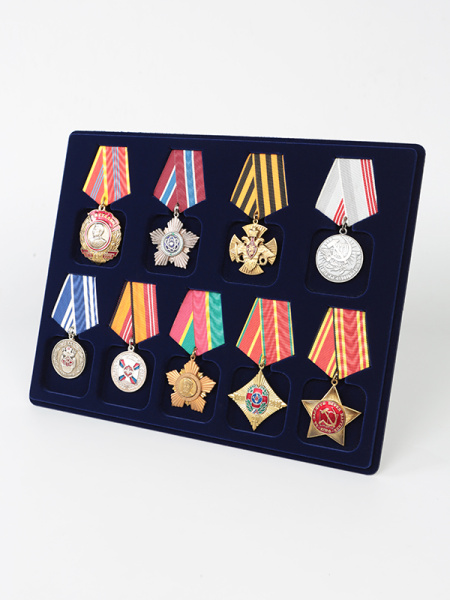 Для того, чтобы коллекционные предметы долгое время оставались в первоначальном состоянии, их нужно правильно хранить. Планшет отлично подходит для этих целей. В интернет-магазине COINBOX вы можете купить планшеты серии S для медалей, орденов, монет, значков. Изготавливается это изделие из качественного пластика, на который наносится флокированное покрытие. Этот материал великолепно контрастирует с металлом коллекционных предметов, выделяя и подчеркивая их. В зависимости от цвета монеты, ордена или медали, можно подобрать подходящий цвет бархатного покрытия: зеленый, черный, темно-синий, темно-бордовый.