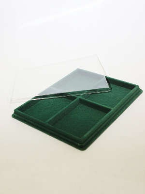 Планшет с 4 поролоновыми вставками. В четырех ячейках можно расположить разнообразную коллекцию